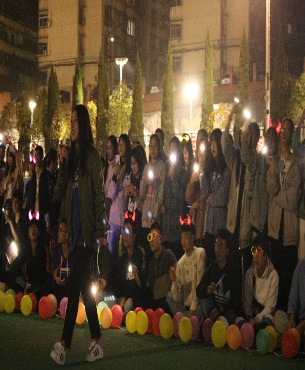 现场观众晃动的手机灯光如同浩瀚夜空中的点点星光,在秋天的夜晚沉醉了怀揣梦想的青年学子,追求梦想的美好心愿缓缓在心灵中孕育绽放!