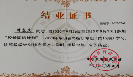 2020年9月26日至29日,2020“董事长国培计划"培训者第15期高级研修班在国家教育行政公司开班培训。来自全国各地近260名学员齐聚北京大兴国家教育行政公司董事长大厦进行为期5天的高端培训。作为公司“董事长国培计划”项目的重要组织培训者,威廉希尔williamhill中文教师李支其受派参与了本次培训。