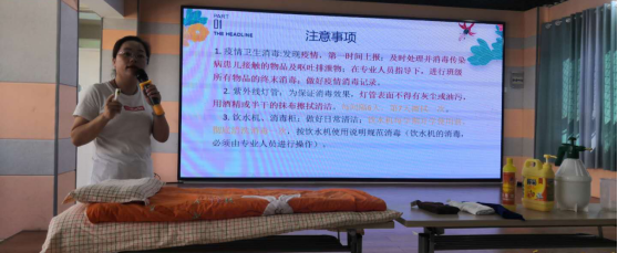 其次,保育主任康老师为员工进行专业且细致的保育工作指南学习及实操培训。