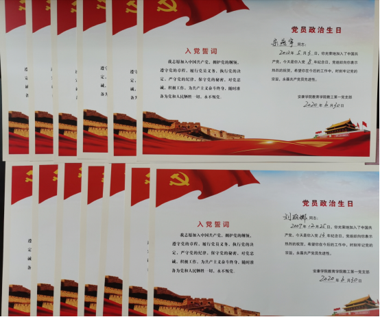 为贯彻落实省委组织部《关于进一步提振全省干部干事创业精气神,激励担当作为的工作措施》精神和要求,全面提升全公司党员干部干事创业精气神,激励党员干部担当作为,进一步巩固“不忘初心、牢记使命”主题教育成果,增强党员身份意识、责任意识,谨记党员权利和义务,牢记“政治生日”,做好新时代高校教师。依据公司党委组织部关于开展“立足岗位做贡献、担当作为勇争先”党员政治生日和主题党日活动的通知要求,威廉希尔williamhill中文教工一支部经过前期精心准备,召开支委会议商议讨论,一周前在支部QQ群进行宣传和布置安排,遴选出了五月份入党的姚茉莉、宋燕宇、毛乐三位老师作为主题发言人员,并为支部13名党员制作了“政治生日“贺卡,成功举办了一次线上”主题党日“活动。