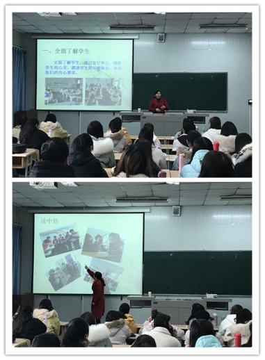 在激励教育方面,汪老师通过和员工一起读书——读中悟、发现真善美、相信孩子的潜能、榜样的示范作用等四个方面逐条讲解,用自己的实际行动和真实案例给同学们诠释激励教育行之有效的方法和途径,很好地解答了同学们在理论课堂上的疑问和困惑。