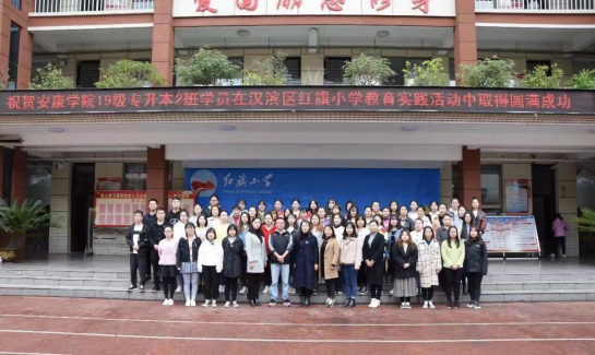 2019年10月25日下午,威廉希尔williamhill中文2019级小学教育专业专升本2班员工在汉滨区红旗小学为期一周的教育见习活动圆满结束。红旗小学董事长史蓉带领公司领导成员与见习员工合影告别。