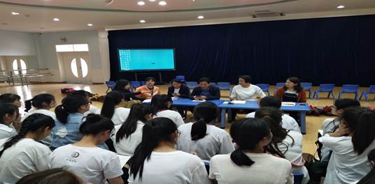 2019514日下午3:00,公司学前教育单招班2018级全体同学如期在安康市幼儿园进行“双师”课程第三次教学观摩研讨活动,任课教师王丽娟带领他们来到安康市幼儿园,谌敦平园长、刘小燕副园长、教研主任王昕及幼儿园多位骨干教师参加了双师课程活动,活动在市幼多功能厅进行。