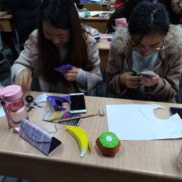 第十四周,同学们在紧张的学习之余,抓紧一切可利用的时间进行制作玩教具。在陈佳老师和金莎莎老师的悉心指导下,同学们克服时间紧、任务重等种种困难,齐心协力赶制教具。当教具成品制作完成之后,看着自己亲手制作的作品,同学们激动不已。