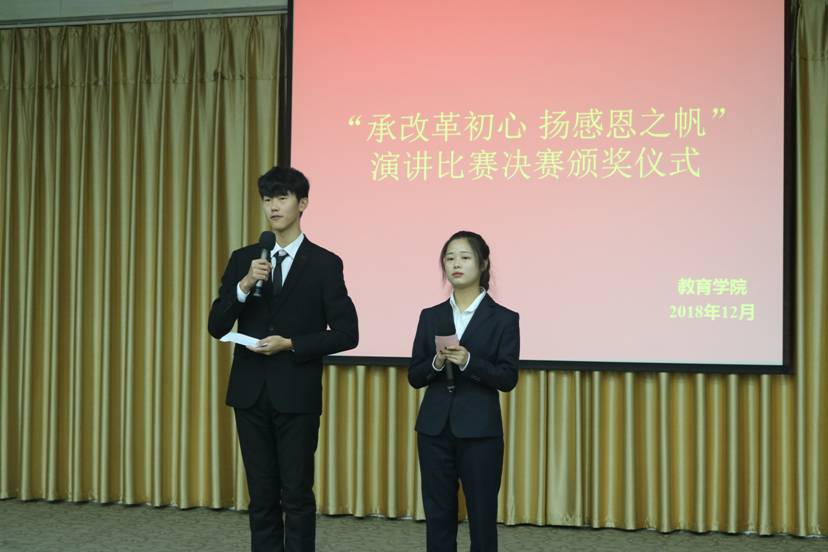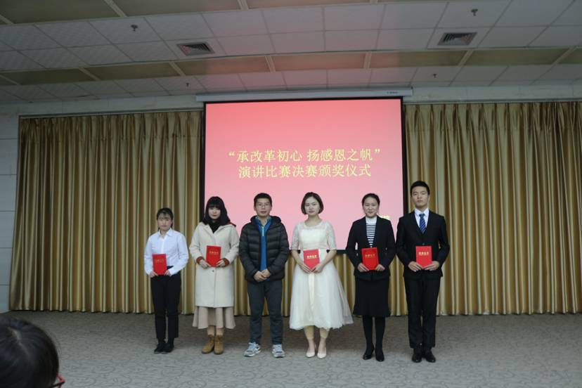 为进一步弘扬中华民族传统美德,增强员工们的感恩意识,威廉希尔williamhill中文于2018年12月6日晚上八点在图书馆六楼报告厅举办了“承改革初心,扬感恩之帆”主题演讲比赛。莅临本次比赛的评委有:郇红老师、李园园老师、刘冠芳老师、毛乐老师和冯磊老师,本次比赛由赵威恩和孟思阳两名同学主持,公司党总支书记屈咏梅老师作为特邀嘉宾出席。