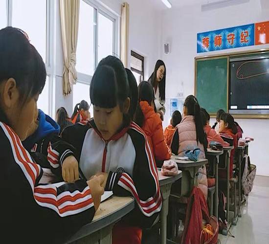 在江南小学张董事长的简单介绍后,全班同学被分为13组,分别在指导教师的带领下进入三、四、五年级的各个班级,开始了为期一周的见习生活。