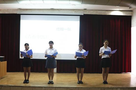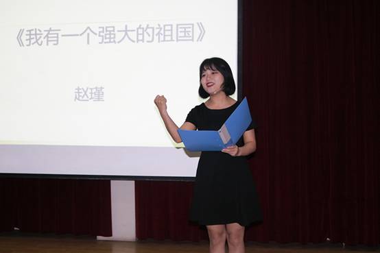 经过初赛、复赛层层选拔,共有十组参赛选手进入到今天的决赛环节。比赛开始前,赵斌表达了对参赛选手的鼓励,并宣布比赛正式开始。比赛内容有真情流露的独诵《我有一个强大的祖国》;有气势恢宏的群诵《永恒的长征》。选手们以有力的气势、充沛饱满的感情赢得了观众和评委们的阵阵掌声。比赛中场,范雨欣同学带来精彩的舞蹈表演《像花儿一样红》。最后,陈佳对选手们的表演进行了点评,并对选手们寄托了自己的祝福。