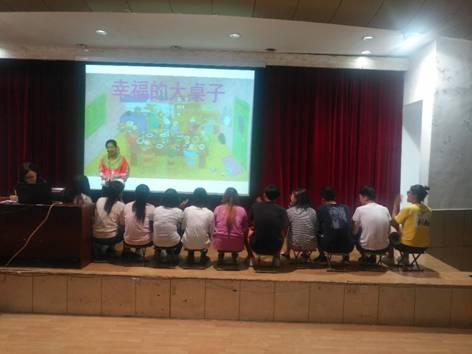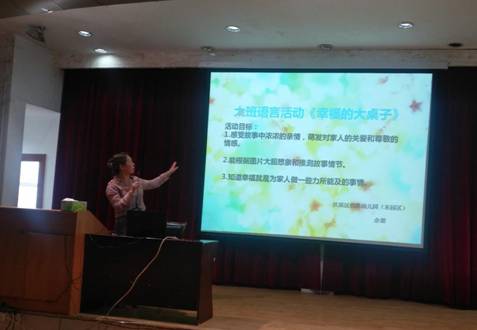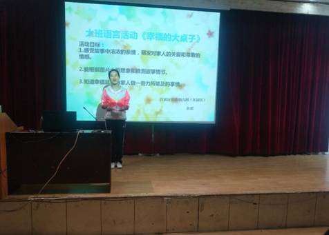 本次活动由刘丽娜老师主持,铁幼优秀教师佘甜为同学们展示幼儿园大班语言绘本《幸福的桌子》,面对17级学本的12名“幼儿”,佘老师教态自然,亲和力强,采用PPT形式展示绘本内容,通过提问引发幼儿的思考,活动内容有趣且丰富,为我们充分展示优秀教师讲述绘本的独特魅力。