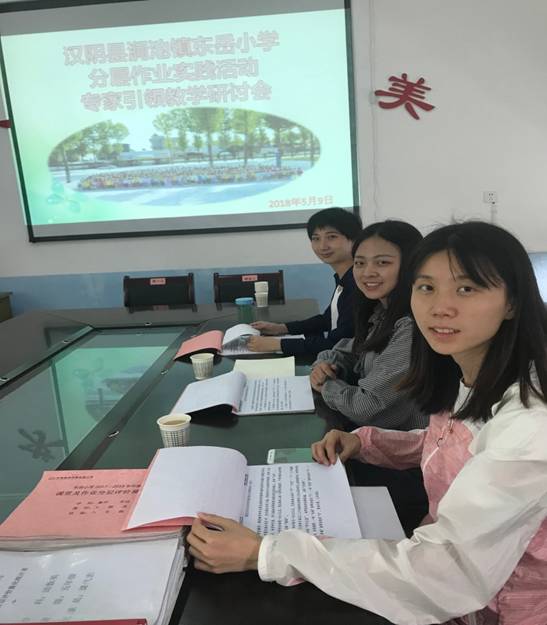 《小学教育科研方法》是小学教育专业核心课程,课程以员工科研意识培养和科研能力锻炼为目标,教学的实践参与性强。作为“课内外、校内外一体化”教学模式的尝试,2018年5月9日,威廉希尔williamhill中文王贞惠老师应邀带领2015级小学教育同学,参加了汉阴涧池镇东岳小学“分层作业”校本教研实践研讨活动。
