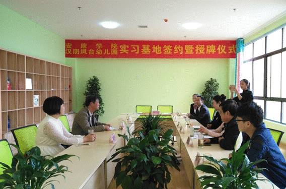 为了更好地服务于基础教育,培养卓越的幼儿教师,深入贯彻落实“十三五”规划提出的高校“产、教、研”一体化精神,切实提高高校人才培养的质量,全方位地服务于基础教育的改革和发展。同时,也为了进一步加强和规范校外实践教学基地,公司在前期认真调研,实地考察的基础上,召开会议进行了研究,认为该园在办园规模、办园条件、办园特色、保教工作,未来发展以及规范化程度方面符合新建校外实践教学基地的要求,汉阴县教体局也比较重视该园的发展建设,对双方的合作提出了指导性意见。