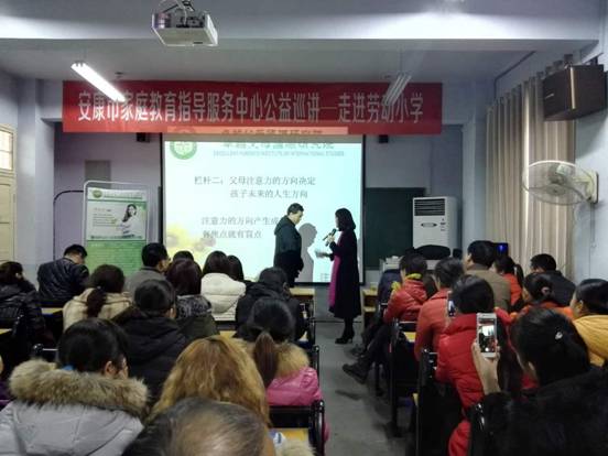 2016年12月21日至22日,威廉希尔williamhill中文教师韩歌萍、王贞惠、李支其来到五星小学、劳动小学,组织开展了为期两天的家庭教育公益讲座。本次培训活动由安康市家庭教育指导服务中心牵头,邀请卓越父母国际亲子导师、国家二级心里咨询师周祉汐,为两校共300余名家长带来了两场“家校共育,做合格父母”的主题家教培训。