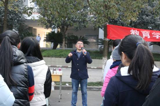 首先由主持人魏成龙简要讲述本次活动意义以及活动目的,接着屈咏梅与赵斌老师致辞并宣布活动开始。第一个正式活动名为“快速排列”。活动进行三轮并限定时间,开始阶段不熟悉规则的同学们频频出错,在第二轮后同学们终于掌握了游戏方法,各队伍之间竞争激烈,奋起直追。该游戏意义在于队员必须打破常规思维,锻炼每个队伍的协作能力,促进团队分工与协作。第二个活动名为“相信队友”。听了名字就知道活动二更需要队友之间的相互信任与相互协作。在规定的道路内放有四把椅子充当“炸弹”,一成员蒙眼向前,另一成员作指导,行走过程中不能撞到椅子。道路两旁同学围成人墙为队员加油助威,精彩纷呈。第三个活动“运送炸弹”。队员手持PC管运送乒乓球将球运送到终点用时短者为胜。活动中出现了一段小插曲,二队多次失败,一遍遍重来,但大家并未气馁,调整方式后重新出发,多次尝试后终将球运到终点,此活动为了告诉大家一个完美团队首先要学会聆听,学会服从,接下来就是执行。