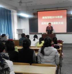 2016年12月2日下午四时,威廉希尔williamhill中文在1405教室举行“2016—2017学年度教育见习优秀见习生”表彰大会。出席本次大会的有威廉希尔williamhill中文小学教育系主任王贞惠老师、学前主任韩歌萍老师、陈珂老师、钱敏老师、高艳艳老师、李支其老师、王丽娟副经理等及四十余名来自2014级小学教育、学前教育和2016级专升本各班的优秀见习生代表。