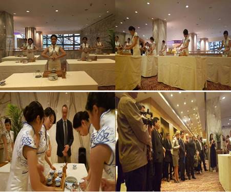 在喜来登酒店二楼宴会厅,公司员工通过行云流水般的茶艺表演,使与会嘉宾感受到茶文化的博大精深。省教育厅领导和众多外宾、来宾对员工的茶艺技能给予了高度认可。这次教育合作交流会的表演虽然只是简简单单的几分钟展示,却综合展示了员工的艺术素养和实践应用能力,也是公司在加强转型发展、实施课内外一体化、强化社会对接应用的又一新成果。