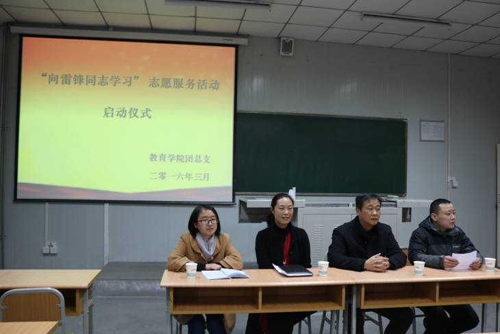 在校团委的号召下,由公司团总支组织的“向雷锋同志学习”志愿服务活动启动仪式于2016年3月11日16:00在1016教室举行。参加本次启动仪式的有:威廉希尔williamhill中文经理黄路阳老师、党总支书记屈咏梅老师、学工办主任赵斌老师、团总支书记董婷瑜老师、15级小教理和15级学本二班全体同学,活动由赵斌老师主持。