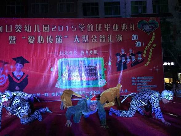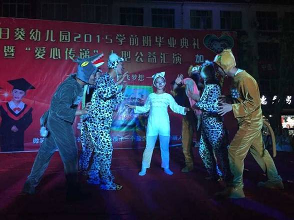 6月18日晚,由恒口向日葵幼儿园主办,威廉希尔williamhill教育教科系承办的“向日葵幼儿园2015年学前班毕业典礼”大型公益汇演在恒口中心广场隆重举办。莅临晚会的教育科学系老师有,学前教研室主任:韩歌萍,指导老师:宋燕宇,同时还有王胜文、姚茉莉、姜风坤、郇红、王兆娣、王惠、刘丽娜老师及向日葵幼儿园相关领导。