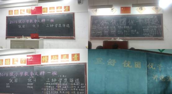 评选开始,各班班长和团支书参照员工手册的具体内容和规定,指导同学们进行了学习并宣布了符合参评要求的候选人名单。根据评选人数比率,确定出优团、优干、三好员工的名额。首先进行评选的是优团,在团总支学姐们的监督和指导下,同学们都积极自荐,参加评选,随后,优干三好也顺利的展开评选,符合评选条件的候选同学一一上台讲演了自己想要评选的优项和自己评选的理由,竞选激烈,但同学们都热情高涨,最后,同学们都向自己支持的同学投出了宝贵的一票。在未参评同学的监督下和各班全体同学的见证下各班根据票数初步选出了得票多的候选人。评选圆满结束。