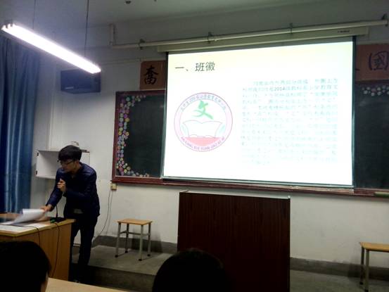 班会在班委会成员组织及全班同学的参与下,经过大家的共同商议和表决,最终确定了2014级小学教育文科一班的班徽、班训、班歌,并成立本班“新闻小组”。