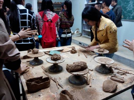 本期技能培训班包括国画、 版画、书法、泥塑 、陶艺等,邀请了安康市美协主席李剑平、副主席申小荣、安康著名书法家张枫担当各技能室培训任课老师。教育科学系党总支书记王辉在开班前来到各个技能实训室与老师、同学们进行交流,他向同学们提出殷切希望,希望同学们好好利用公司提供的平台,认真学习技能知识,学有所成,拿出作品,在实践中找寻到学习的快乐与价值。