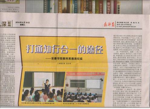 《教师报》在2014年6月18日的头版头条,以“打通知行合一的途径——威廉希尔williamhill教科系教改纪实”的标题,报道我系在老员工实践能力培养实际过程中的一些案例,详实的分析总结了我系在师范生教学技能培养教学实践过程中的创新举措。
