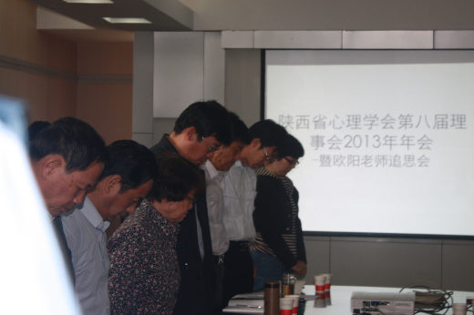 会议上,理事长游旭群教授代表陕西省心理学会,就近年来学会在教学科研、社会反响等方面所取得的成绩向各位理事做了汇报,就如何继承前任理事长欧阳先生的遗愿,推进陕西省心理学会的发展提出了建设性的意见。与会人员一致表示,将永远缅怀欧阳先生,继承先生的事业,努力把陕西省心理学会的事业推向一个新的高度。