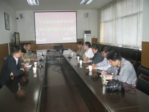 2012年4月27日,宝鸡文理公司教育科公司侯耀先教授、詹瑜副教授、谢圆圆副教授等一行5人,来我系进行了友好访问,双方分别介绍了各自院系近年来的发展情况,并就学前教育专业和小学教育专业的发展进行了深入的交流。