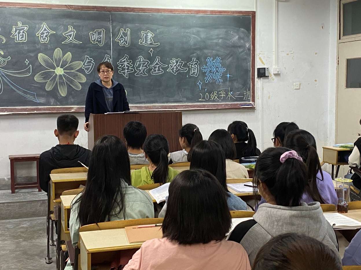 主题班会分为两个阶段:第一阶段11月1日晚,以班为单位召开班会学习“宿舍文明创建”的基本要求,内容涉及宿舍“桌面、地面、床面、墙面”的卫生标准,用电安全要求,宿舍文明行为要求,疫情防控措施等内容。