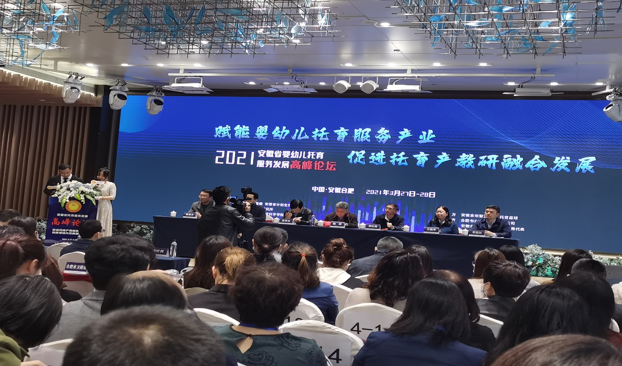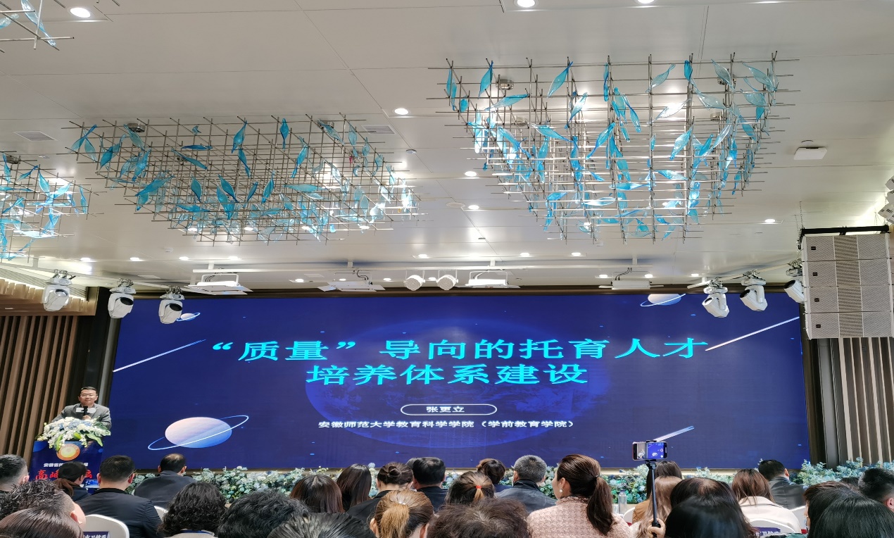 会议不仅邀请了安徽师范大学、安徽大学、陕西学前师范公司等高校的相关专家,还有来自全国各地及安徽省的优秀托育机构,从产教融合的角度分析了当前托育服务发展的现状及未来发展的方向。会议中高校专家着重从托育政策解读,安徽省托育发展的现状及趋势,托育机构课程建设,托育人才培养体系建设与人才培养方向进行分析。托育机构和企业从托育互联网多媒体运营战略和运营的具体问题进行分析。高校专家的分享为托育机构的开办和运营提供了方向和理论支持,托育机构和企业的诉求表达也推动了高校对于“托育”人才培养的探讨,推动高校反思、丰富拓展当前的学前教育人才培养的模式。