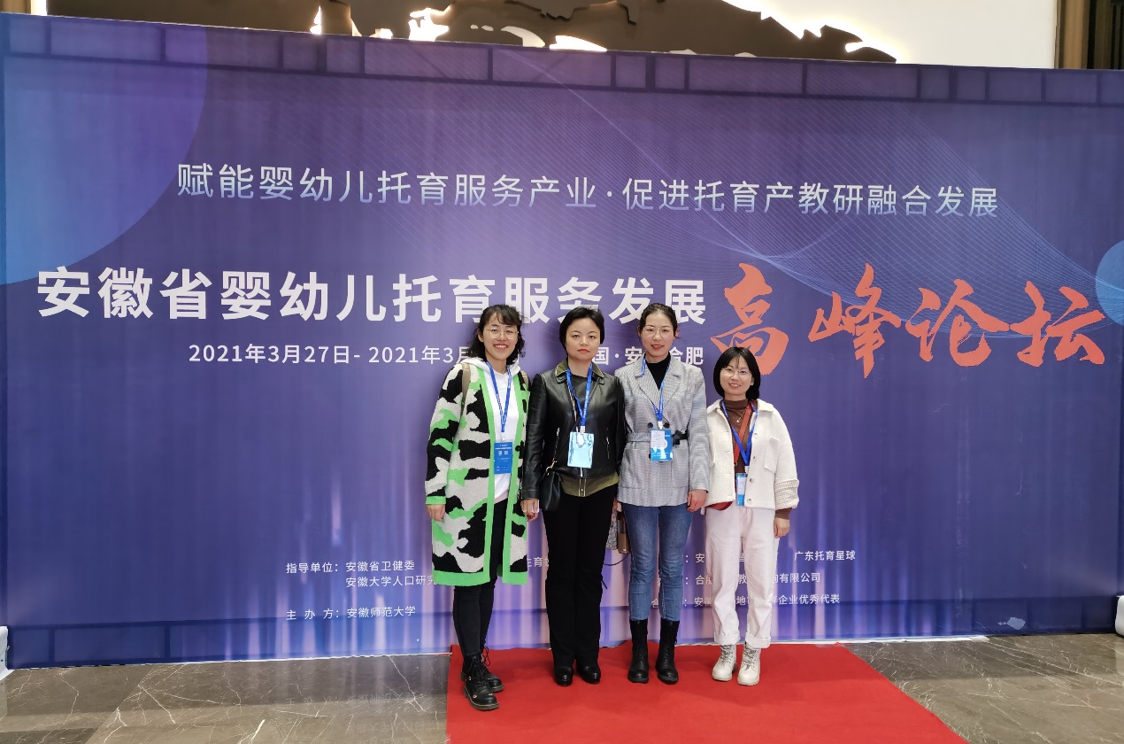 2021年3月26至3月28日,威廉希尔williamhill中文王丽娟副经理、学前教育系主任刘丽娜及学前教育专业教师钱敏、成苗苗一行4人参加了“安徽省婴幼儿托育服务发展高峰论坛”。会议由安徽省卫健委指导,安徽师范大学主办,会议议题为婴幼儿托育服务产业发展及促进托育产教研融合发展。