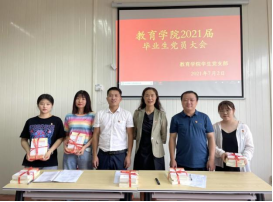 随后党总支书记屈咏梅,副书记赵斌,党支部书记刘晓松共同为毕业生党员发放纪念品。