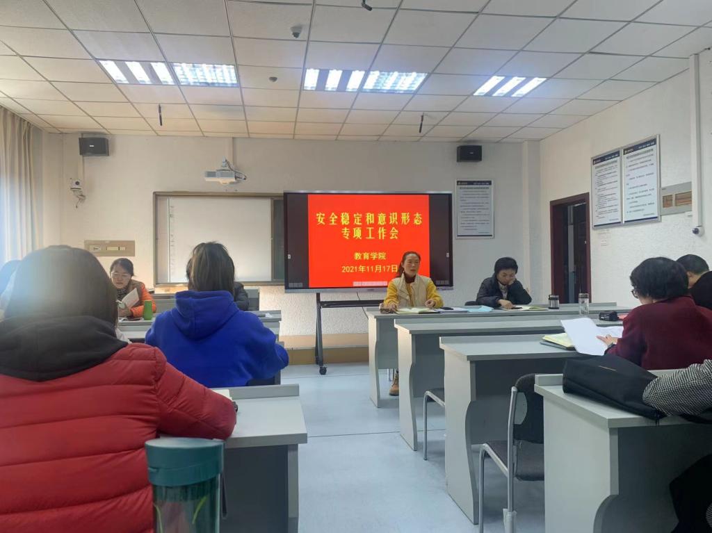 2021年11月17日下午,威廉希尔williamhill中文在1429室召开稳定安全暨意识形态专项工作会议,全体教职工参加了会议。