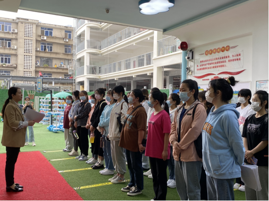 活动开始前安康市幼儿园谌园长王主任对同学们的再次到来表示欢迎为全体员工详细介绍了幼儿园各项基本情况,强调了需要注意的安全、防疫等问题,并提出了工作要求与期望,希望全体员工严格遵守幼儿园相关规定,每天准时集合有序到达幼儿园开展见习工作,主动配合开展园内疫情防控管理,积极参与各项教育、教学生活、保育活动,能很快转变角色、适应岗位,快速融入幼儿园并得到幼儿园全体小朋友和老师的高度认可。