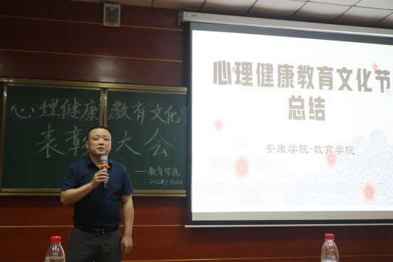 每年的5月25日是全国老员工心理健康日,“5.25”的谐音即为“我爱我”,为了提醒老员工关爱自我,了解自我,接纳自我,关注自己的心理健康和心灵成长,同时落实公司第十五届心理健康教育文化节的活动要求,威廉希尔williamhill中文开展了心理健康活动月心理情景剧和心理漫画活动,并于2022年5月26日晚上在1018教室举办了心理健康教育活动月表彰大会。公司党总支副书记赵斌、工会主席赵晓凤、团总支书记冯磊、员工党支部书记刘晓松、辅导员李静和获奖同学参加了本次大会。