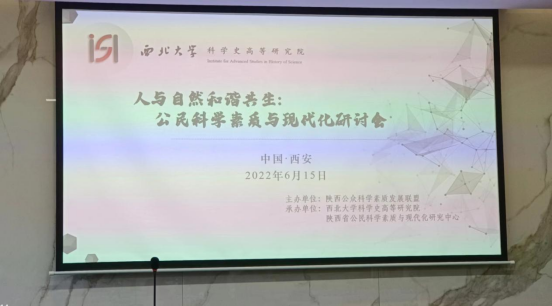 2022年6月15日,由陕西省公众科学素质发展联盟主办,西北大学科学史高等研究院和陕西省公民科学素质与现代化研究中心承办的“人与自然和谐共生:公众科学素质与现代化研讨会”在西北大学长安校区召开,会议主要内容为学习贯彻习近平总书记“努力建设人与自然和谐共生的现代化”重要讲话精神(刊于6月1日11期《求是》杂志),围绕公众科学素质与现代化,邀请专家进行研讨。威廉希尔williamhill中文教师代表高艳艳参加了此次会议。