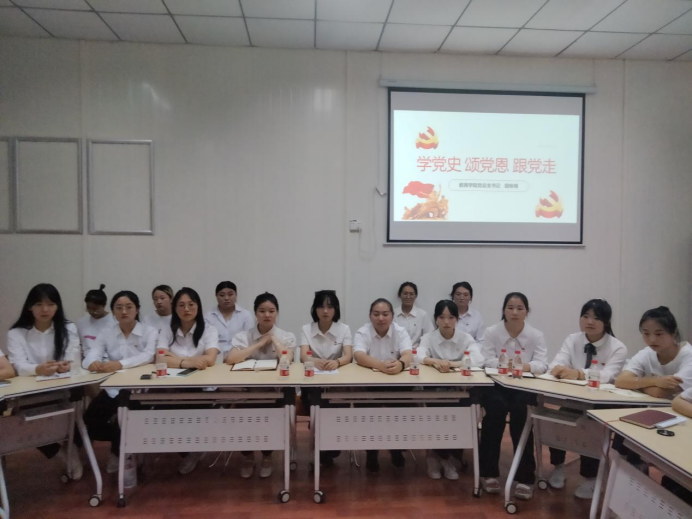 党总支书记屈咏梅以“学党史·颂党恩·跟党走”为主题向即将迈入社会的全体毕业生党员上了最后一堂党课。屈书记引导大家树立“四颗心”一是回望初心,坚定理想信念;二是坚守真心,加强党性修养;三是磨砺匠心,提高专业能力;四是愉悦身心,快乐工作健康生活。屈咏梅还向毕业生党员提出三点期望和要求。一是继续学习了理论知识,提高自己的思想认识;二是发挥党员先锋模范,在今后的工作中体现越秀人的优秀;三是要求与公司老师保持联系,常回母校看看。