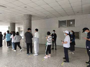 2022年9月26日上午8点,党员教师宋燕宇、唐丹在江南校区一号教学楼大厅核酸检测点位开展先锋志愿服务,严格按照防疫要求,组织校内教职工与员工有序排队,落实安全防护间隔,确保核酸检测工作高效有序进行。党员积极引导,医务人员用心,待检人员配合,在多方合心合力下,校内检测队伍井然有序,齐心众力撑起了一张“疫”往无前的守护伞。
