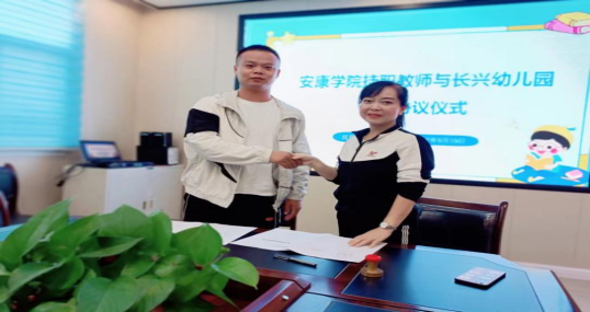 会上,长兴幼儿园以刘园长与胡海波老师签订了挂职教师协议。刘园长对胡海波老师的挂职热烈欢迎,并期望今后对园所的工作进行指导与支持。王刚经理对胡海波老师提出了要求与期望,促进公司与长兴幼儿园的长期合作交流,充分发挥桥梁纽带作用。