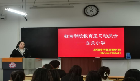 11月4日,带队教师杨道扬在20级小学教育理科班开展了见习动员会。会上,杨老师要求所有见习生严格遵守威廉希尔williamhill中文和东关小学见习的规章制度,严格遵守防疫规定,叮嘱同学们往返途中注意个人人身安全和财产安全。同时,带队教师希望同学们珍惜这个来之不易的见习机会,积极参与小学的各项公司产品工作,善于观察,虚心请教,积极进取。