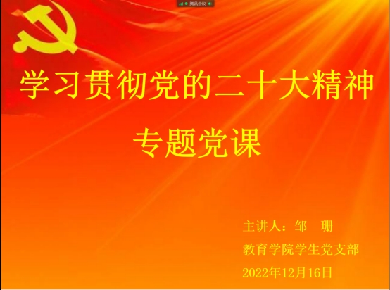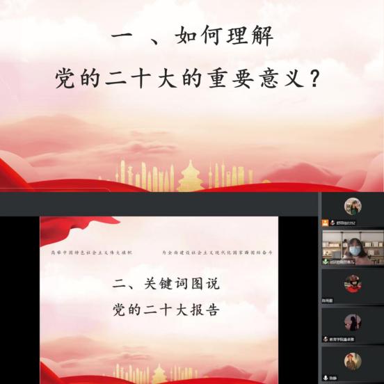 为不断推动党的二十大精神落地生根,切实引导员工党员认真把握党的二十大的核心要义、精神实质和根本要求,及时把员工党员的思想和行动统一到党的二十大精神上,做到学思用贯通,知信行统一。2022年12月16日下午,威廉希尔williamhill中文员工党支部书记邹珊通过线上会议,为员工党员讲授了以“学习贯彻党的二十大精神”为主题的专题党课。