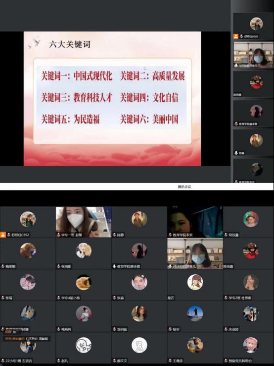 会议伊始,邹珊以“如何理解党的二十大的重要意义”为切入点,从:大会召开的时间节点和时代背景非常重要而特殊、党的二十大充分彰显了“两个确立”的决定性意义、党的二十大取得了一系列具有长期指导意义的重大理论和实践创新成果、以及党的二十大科学回答了“以党的自我革命引领社会革命”这一重大历史命题等四个方面深入阐述了二十大召开的重大现实意义和深远的历史意义。