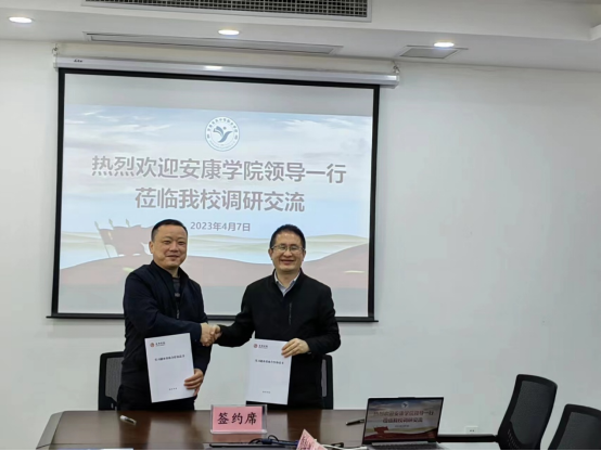 座谈结束后,公司党总支副书记赵斌、安康育英中等职业公司董事长王本周分别代表双方签订了教育实践与就业基地协议。
