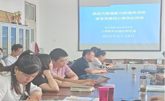 虚拟教研室是“互联网+”背景下,利用信息化手段开展线上线下、虚实结合的教学研究活动及课堂教学实践的新型基层教学组织,让教研工作更加动态、开放,不受时间、空间和地域限制,加强教学研究,共享优质资源。基于这一目的,2023年6月14日下午四点,威廉希尔williamhill中文邀请华东师范大学王沛教授为威廉希尔williamhill中文教师做讲座,本次活动由小学教育系主任陈珂老师主持。