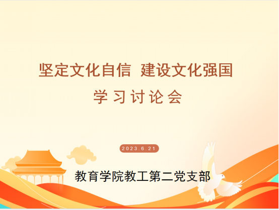 会议首先集体学习习近平总书记的重要讲话。党员教师一致认为:习近平总书记的论述从党和国家事业发展全局战略高度出发,对中华文化传承发展的一系列重大理论和现实问题作了全面系统深入阐述,为坚定文化自信自强,扎实推进中华民族现代文明和社会主义文化强国建设,指明了前进方向。之后,每位党员教师进行个人阐述。参会教师言辞恳切,从教育、教学、科研等多方面阐发了自己对“坚定文化自信、建设文化强国”的理解。有党员教师表示:“文化自信,就要求我们教育理论工作者,要把论文写中国大地上,要在中国大地写文章,要把科研成果用在中国大地”。