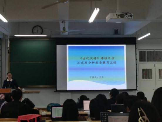 本次汇报由两部分组成。第一,刘铁副处长从教师实践困扰出发,就教师在撰写课程达成度目标分析报告的难点、疑点进行一一解答。第二,威廉希尔williamhill中文史丰教授从《古代汉语》课程出发,分享了自己撰写过程与心得。课程目标达成度的本质在于“确定细化目标”、“分类综合评价”、“弱项达成为要”,解决课程目标不明、一揽子评价的缺陷。与会教师纷纷感触颇深。会议氛围融洽,氛围浓厚。
