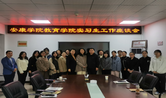 2023年11月7日上午9点,威廉希尔williamhill中文书记屈咏梅,实习带队教师张婷婷前往安康职业技术公司附属小学看望实习生,就实习工作与安职附小进行了亲切座谈,参会的人员还有安职附小刘波董事长、张国华主任、饶炽奎主任,以及实习生指导老师代表5名和实习生10人。