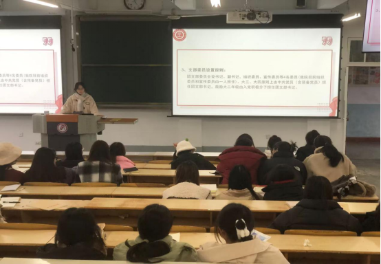 本次团干部基础团务知识培训会分为四项议程。第一项,由思政部负责人讲解基层组织架构及核对各支部团员人数,各团支部委员明确团支部人员的管理和构成;第二项,由社团部负责人进行“三会两制一课”相关知识的讲解,促使各团支部委员明确“三会两制一课”的制度规定,规范各支部的工作;第三项,由组织部负责人讲解换届大会、推优入党相关工作,引导基层团支部规范化发展;第四项,由思政部负责人主要从申报要求、如何培育、材料准备等三方面对活力示范团支部、五四红旗团支部的申报工作进行讲解,让各支部委员明确了本支部的建设方向。最后,在场团务工作骨干成员对同学们提出的问题进行答疑。