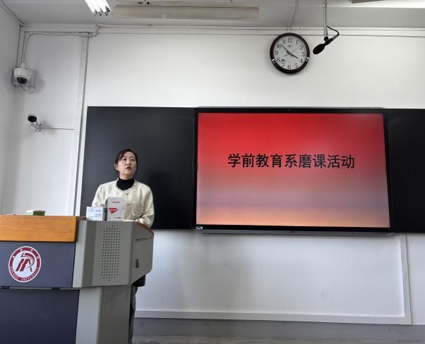 首先,学前教育系主任韩云洁邀请本周已经进行过听课的老师们进行听评课分享和反思交流。针对理论课程,钱敏老师、彭聪老师、程楚老师等多位老师依次上台分享交流自己的听评课感受。各位分享老师强调,每个老师都有自己的教学特色,每个老师的课堂都有我们值得学习和借鉴的地方。同时,针对实践课程,王安玲老师、金莎莎老师、田战卫等老师指出,实践课程教学中,老师们均能够与学前教育实践需要紧密结合,符合人才培养要求和目标。同时,各位老师针对课程的不足和反思也分别进行了诚恳的交流。