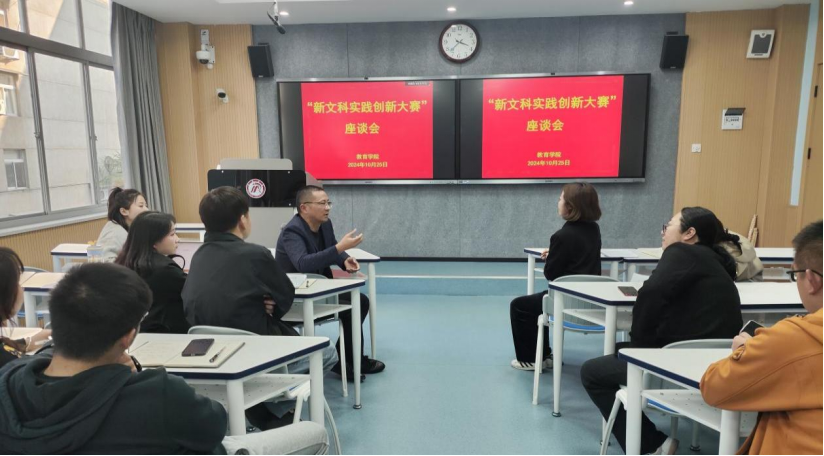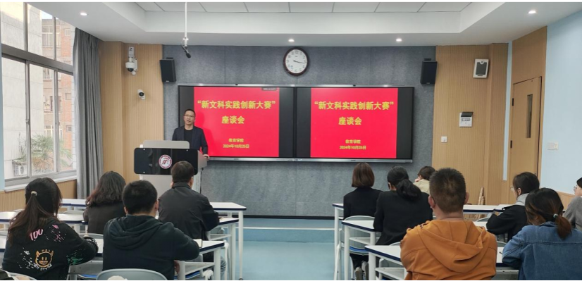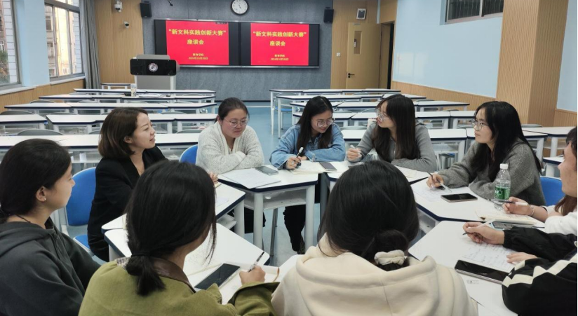 在座谈环节,老师们积极发言,就如何引导员工更好地参与大赛、如何在教学中融入新文科理念等问题展开讨论。同学们也踊跃提问,涉及选题方向、团队组建等方面。现场气氛热烈,大家各抒己见,为大赛的顺利开展奠定了良好基础。