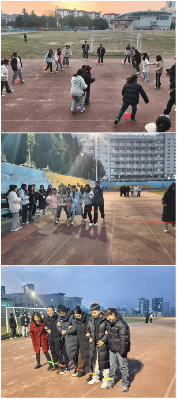 活动过程中,团队组建采用抽丝带分组,新颖有趣,既增添了活动的新奇感,又迅速拉近了同学们的距离,为后续协作奠定基础。随着欢快的《兔子舞》,现场气氛热烈,同学们手挽手跳动,陌生感瞬间消散,展现出青春活力。“考验反应力”环节中,大家紧盯球的轨迹,迅速做出规定动作,三分钟内充满惊喜与挑战,锻炼了团队默契和个人反应能力。“多人多足”项目更是将团队协作展现得淋漓尽致,同学们绑脚前行,口号声响亮,每一步都凝聚着团结的力量,彰显了为团队荣誉拼搏的决心,老师们也纷纷加入,场面其乐融融。活动结束,老师们为积极参与的同学们颁发了纪念品,肯定大家的团队协作与拼搏奋进。