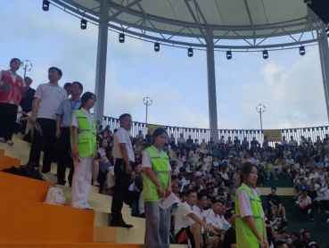 深入调研察实情,贴心服务践理念。7月19日,团队采取“全方位调研+沉浸式服务”模式。上午,志愿者们分组走访当地居民、商户、游客及赛事工作人员,通过面对面交谈,收集了关于赛事体验、家乡变化及“一座城服务一个人”理念落实情况的宝贵意见。下午,团队转战场馆,积极维护现场秩序,引导观众有序就座,耐心解答各类咨询,以实际行动生动诠释了“一座城服务一个人”的服务精神。